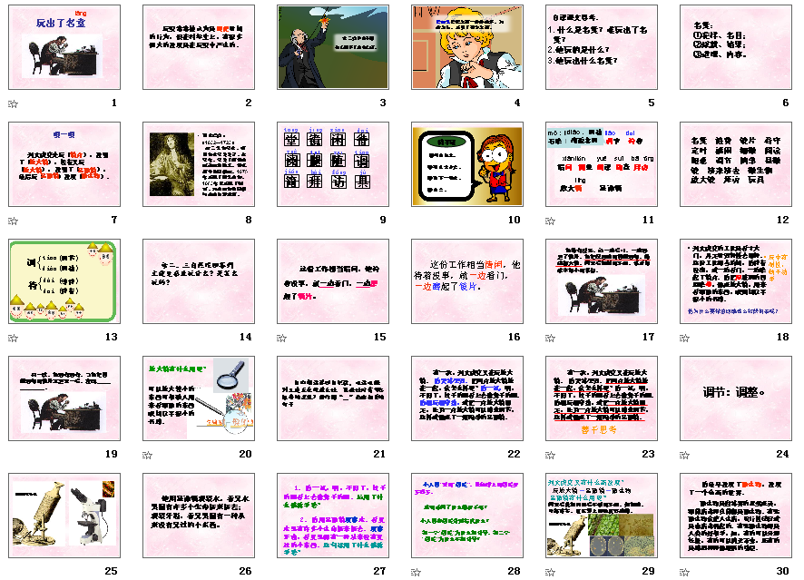 《玩出了名堂》这篇课文主要是讲诉了列文虎克是怎么样做显微镜的,从显微镜里又看到了什么,告诉我们不管做什么事情都要专心致志,既会学习也要玩耍。《玩出了名堂》是人教版小学语文三年级上册第四单元的第15篇课文,这里带来的是玩出了名堂ppt课件,大家可以免费下载玩出了名堂ppt课件直接使用。