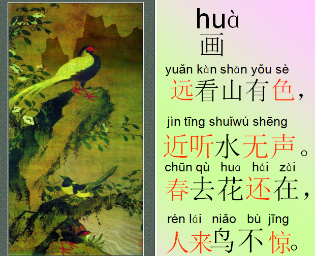 课文画是人教版小学一年级语文上册课文部分第二单元中的第一课,画是一首五言谜语诗,配图中有山、水、花、鸟,一幅优美的景色跃然纸上,引导学生感悟生机勃勃的景象,感受大自然的美。以下是小编给大家带来的人教版小学一年级语文上册,课文画ppt课件,有需要的朋友可立即下载这个画ppt。