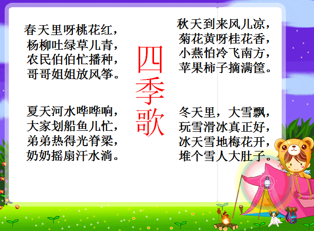 课文四季是人教版小学一年级语文上册课文部分第二单元中的第二课,四季是一首充满童趣的诗歌,通过拟人,排比,描绘了春夏秋冬四季的景色。以下是小编给大家带来的人教版小学一年级语文上册,课文四季ppt课件,有需要的朋友可立即下载这个四季ppt。