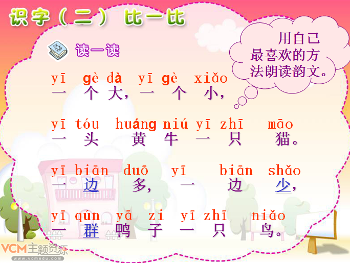 识字二比一比是人教版小学一年级语文上册识字二第四单元第一课,识字二比一比主要有5个部分组成,通过图画,展示农家小院的景色,引导学生学会比较事物间的大小。以下是小编给大家带来的人教版小学一年级语文上册,识字二比一比ppt课件,有需要的朋友可立即下载这个比一比ppt。