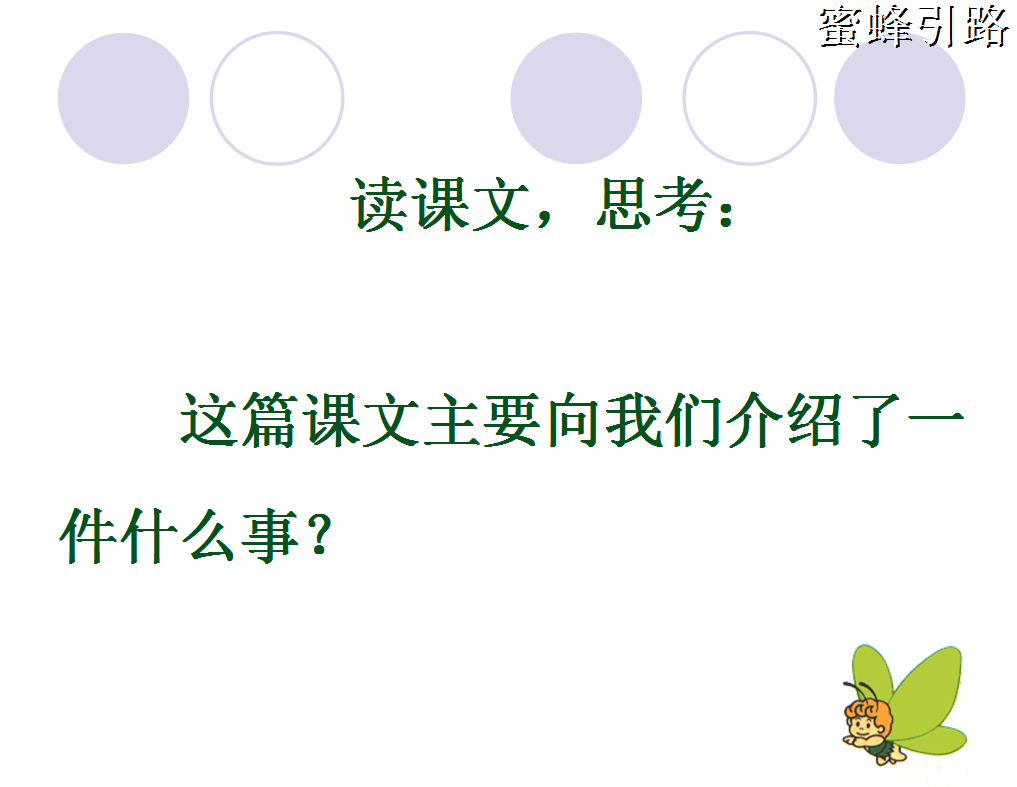 《蜜蜂引路》是一篇篇幅短小,故事情节简单,但却发人深思的文章。该文章收录在人教版小学二年级语文下册中,是第26课课文。本节内容小编为大家带来的是关于这篇课文的PPT课件,如果你需要一份这样的蜜蜂引路PPT课件的话,那就赶紧点击本文下方的下载地址进行下载查阅吧!