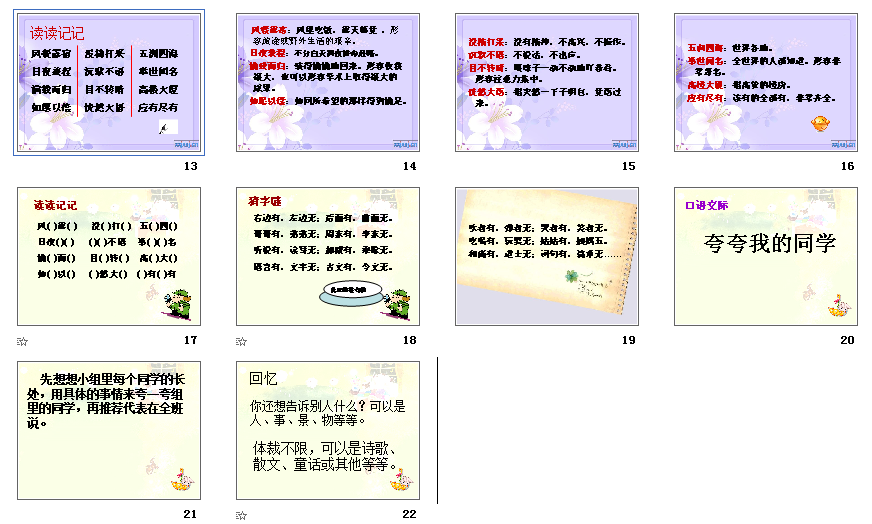 “语文园地”除了帮助学生对所学的语文知识,技能进行系统地梳理,整合,巩固以外,更注重在学生心中培植学习语文的兴趣和自信。