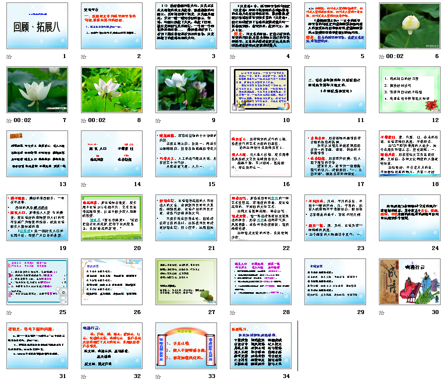 人教版小学语文三年级下册元回顾·拓展八交流课文中写联想和想象的句段,有关于音乐方面的,有关于绘画方面等成语,这里带来的是六上回顾拓展八ppt课件,大家可以免费下载六上回顾拓展八ppt教学。