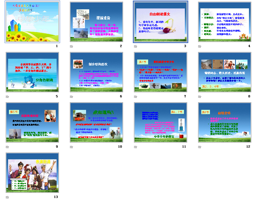 《中华少年》这是一首诗歌作品,全诗共8个小节,赞美了祖国,抒发了作为中华少年的由衷自豪之情,同时也表达了中华少年建设中华的坚强决心,中华少年是人教版小学语文三年级下册第一单元第8课,这是一篇略读课文,这里带来的是中华少年ppt课件,大家可以免费下载中华少年ppt教学。
