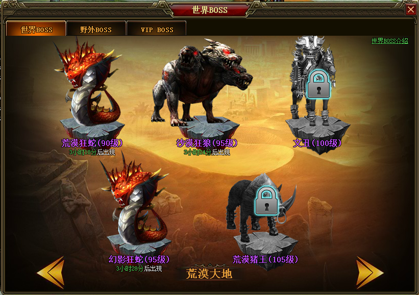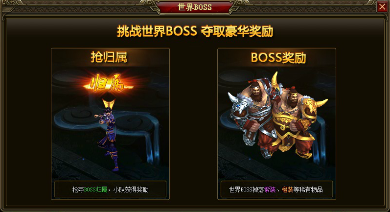 “挑战BOSS”当BOSS挑战开启以后,玩家就可以挑战“世界BOSS”。