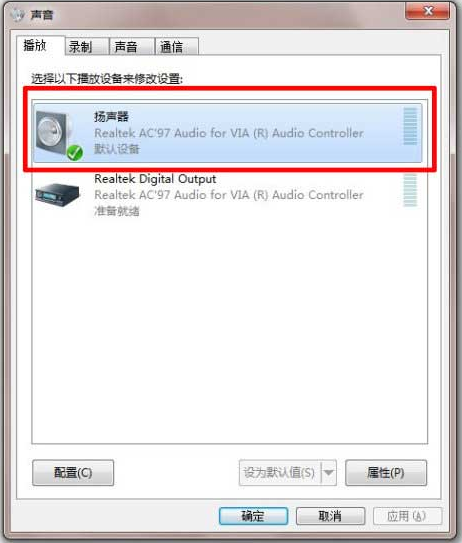 2、进入播放菜单,双击扬声器选项。(如下图)
