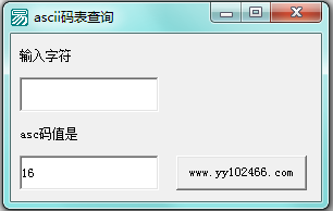 ASCII码表查询工具是一款小巧易用的ASCII码查询器。敲击键盘上任意字符,软件将立即显示出ASCII码值,简单、方便、快捷,使用这么一款小软件,免去了人工记忆的烦恼,需要用ASCII码表时,直接调出软化使用即可。