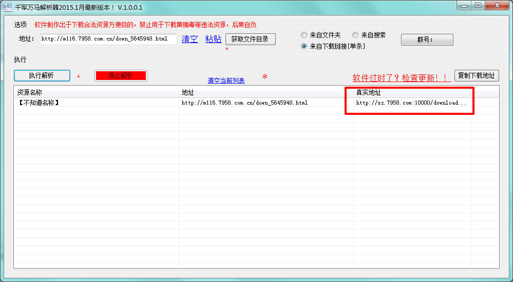 1、可以在千军万马资源搜索中,复制搜索地址进行地址提取,然后批量解析,得到真正的下载地址。