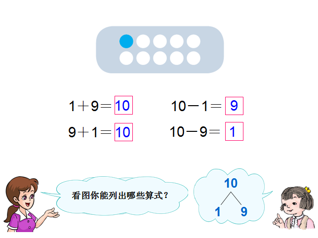以上就是小编带来的人教版小学一年级数学上册ppt课件,10的加减法ppt课件的全部内容,希望大家会喜欢。