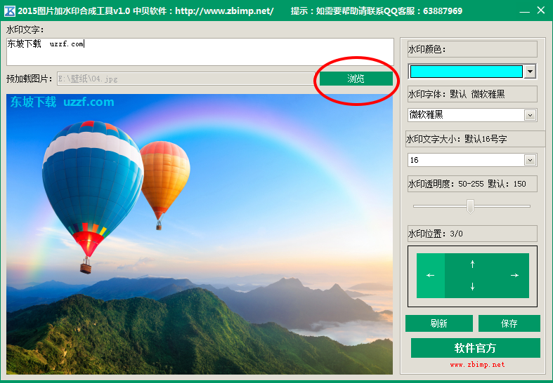 1、中贝2015图片加水印合成工具,加载需要添加文字水印的图片