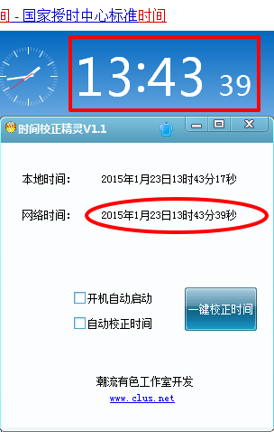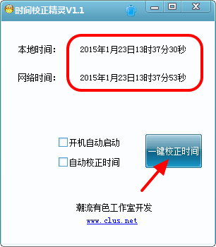 1、打开时间校正精灵,本地时间和电脑时间若有误差,直接点击【一键校正时间】即可