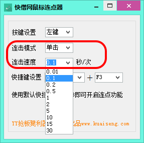 2、设置连击模式以及连击速度,速度最快可达0.01秒