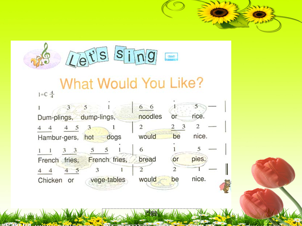 《Unit5 Dinner's ready第二课时》学习beef, chicken, noodles, soup, vegetables,能用句型:What would you like? I’d like some…, please. OK. …yuan, please.来进行情景对话,掌握vegetables的发音。以下是小编给大家带来的人教版小学四年级英语ppt课件,unit5 dinner's ready第二课时课件,有需要的朋友可立即下载这个dinner's ready第二课时ppt。