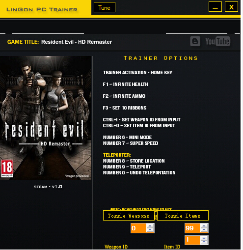 生化危机HD重制版十项修改器使用说明