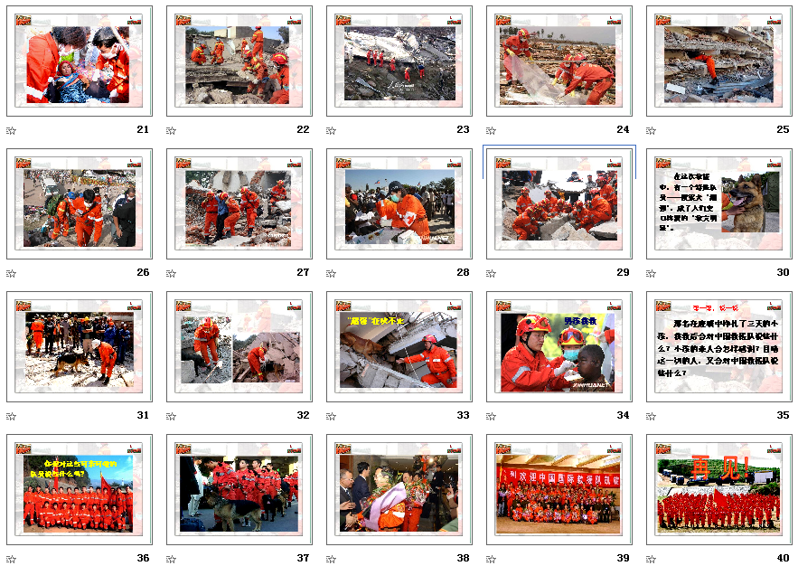 《中国国际救援队,真棒!》是人教版教材三年级下册的一篇略读课文,主要介绍了中国国际救援队在阿尔及利亚实施认真、忘我成功的救援经过。学习课文之前,我先给学生播放了几张图片,是四川地震中救援队积极应战的场面。这样课文内容很快就牵动了孩子们的心。