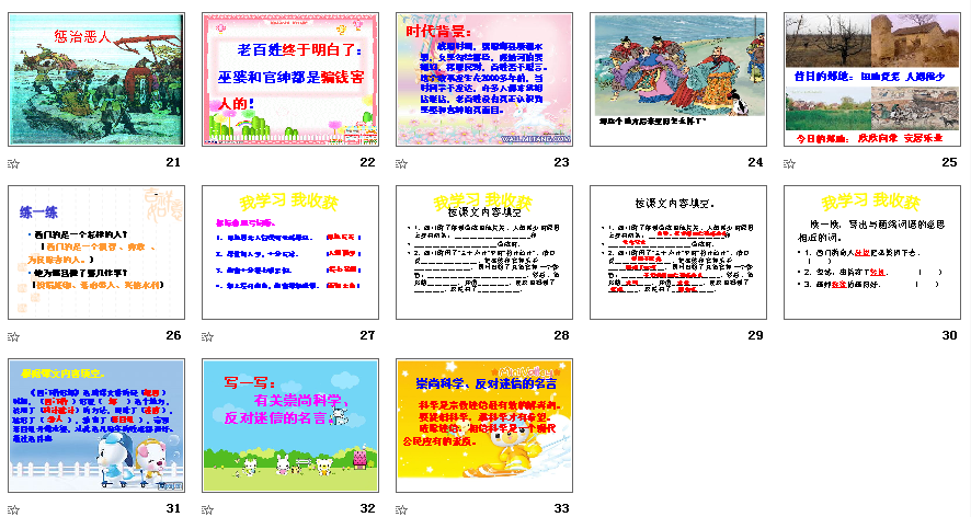 《西门豹》一课讲的是战国时候,魏王派西门豹管理邺这个地方,西门豹这个人利用自己的聪明才智,惩治贪官巫婆、造福百姓的故事。西门豹破除迷信的过程又可以分为三个阶段,其中,惩办巫婆和教训官绅是主要部分。下面带来的是人教版小学语文三年级下册西门豹ppt课件,需要的朋友可以免费下载西门豹ppt教学使用。
