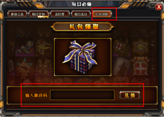 2.选择“礼包领取”后输入新手卡序列号,点击“兑换”即可。