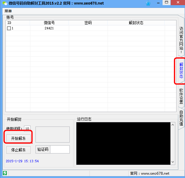 注意:微信解封刷新验证码频繁容易出现IP限制,所以建议使用2线程,解封4个左右需要换一次IP。