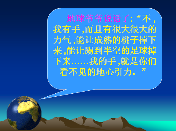 《地球爷爷的手》本节课通过引导学生玩游戏,了解地心引力这个科学知识,能主动探究并认识生字,激发学生对地球中的科学的兴趣。以下是小编给大家带来的是人教版一年级语文下册ppt课件,地球爷爷的手ppt,有需要的朋友可立即下载这个人教版地球爷爷的手ppt。