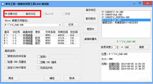 身为电脑菜鸟每次都会电脑坏了,肯定会急死人,那么今天用了菜鸟工具一键备份还原工具,就让你以后不需要在依靠别人就能快速安全的进行一键还原恢复备份的操作,如果觉得需要就赶紧来此下载!