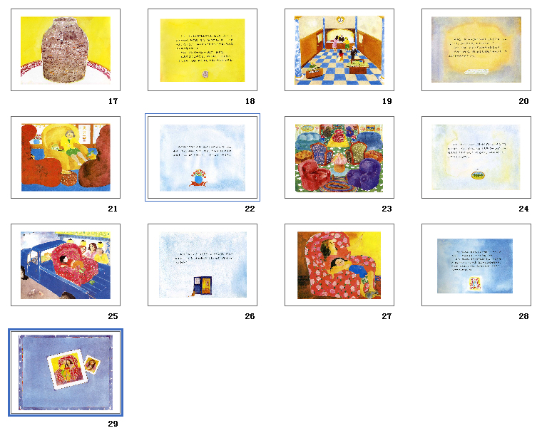 作者乌伊拉·毕·威廉斯,她最在意故事的“深度”,读后是否有“认真”的效果,而这种认真,必须有趣味和幽默她的画风和线条有强烈的特殊风格,擅以鲜亮的色彩,表达多元文化小区的生活和家庭的爱与活力。她的作品使人一再体验:在简单的事情上,发现人生的美丽和喜悦。
