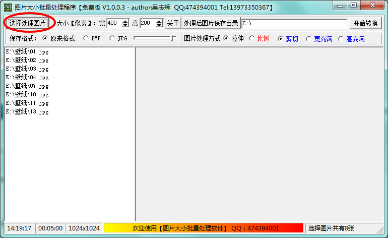 1、打开图片大小批量处理程序,选择需要处理的图片目录(按住Ctrl键可多选)