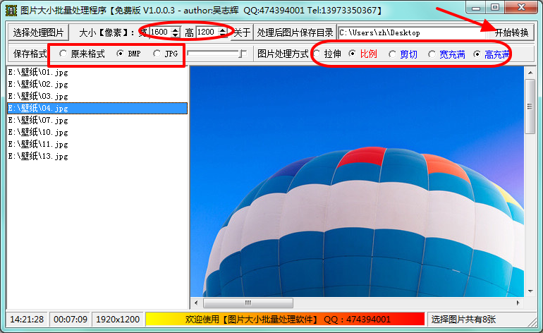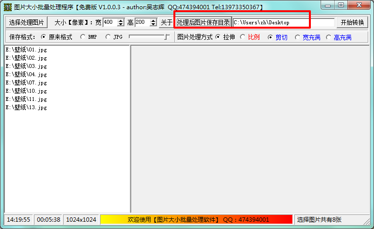 图片大小批量处理程序绿色免费、小巧易用,支持图片格式、图片大小批量修改,特别适合学校修改学生证,单位修改员工的证件照片,批量处理,方便快捷。欢迎下载使用!