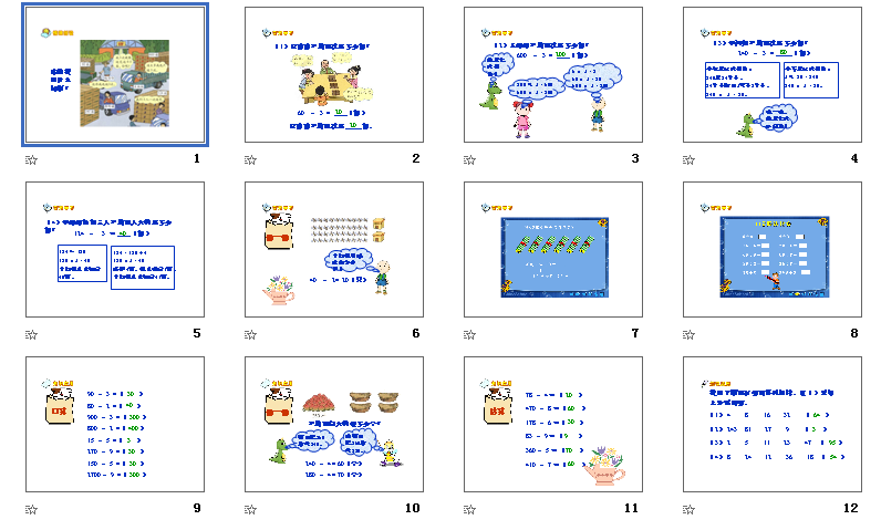 口算除法是除数是一位人教版三年级下册数学第二单元数的除法的教学中一课,在实践操作活动中理解掌握一位数除法(被除数各个数位上的数都能被除数整除的)口算方法,这里分享的是口算除法ppt课件,大家可以免费下载口算除法ppt教学使用。