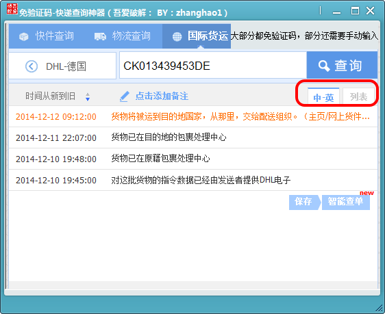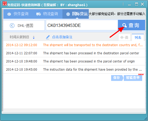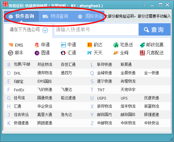 快递查询神器是一款绿色小巧、简单易用的快递单号查询神器。该软件不光支持国内近百家物流公司,而且还支持国际物流查询,十分给力。最重要的是查询快递单号还免验证码,支持查询,方便快捷,特别适合网购量比较大的用户。欢迎下载!