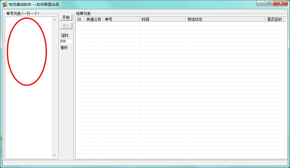 1、打开软件联盟物流查询软件,复制运单号到编辑框中,一行一个