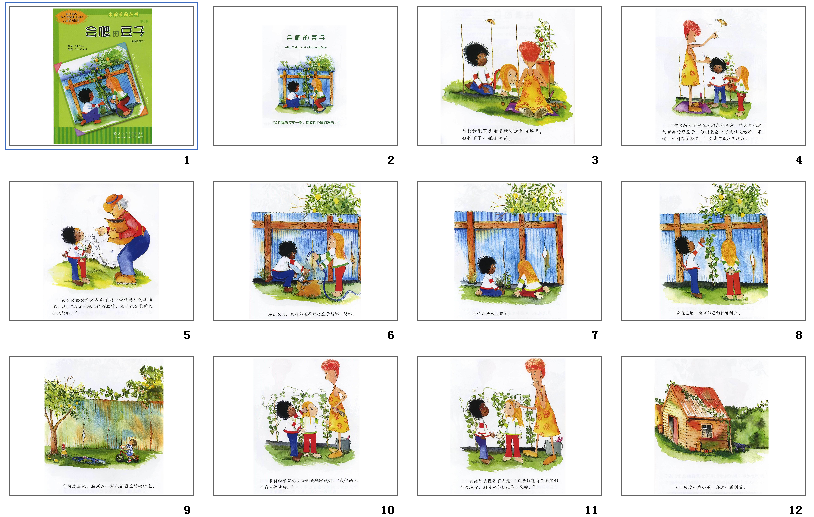 这是一棵普通而神奇的豆子。它由普通的人播种,生长,向着自己的方向生长,它始终知道自己要爬到什么地方去,去做什么。故事中的豆子爬到了一个生病的小男孩的家里,让他吃着自己的果实,变得结实健康,让有气无力的孩子重新精神抖擞。播种并看顾它生长的两个可爱的不同肤色的女孩儿,她们看起来不一样,可他们的心灵是相通的,因为尽管人有人种之分,国界之分,但爱心是没有界限的。就像这棵会爬的豆子一样,延续这所有人的爱心。。。。。。