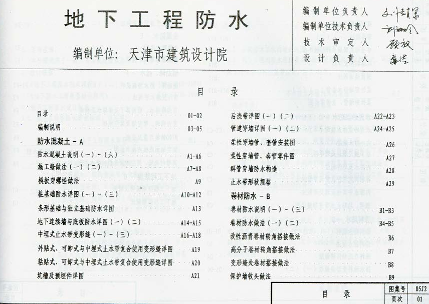 05J2地下工程防水图集简称05j2图集,本节内容小编为大家精选带来的这份05J2地下工程防水电子版图集内容完整,图集采用形象、直观的图示加文字说明的方法对图示进行了详细的解释,是一份不可多得的参考工具,欢迎有需要的朋友点击本文下方相应的下载地址下载查阅这份pdf格式高清免费版05J2地下工程防水图集。