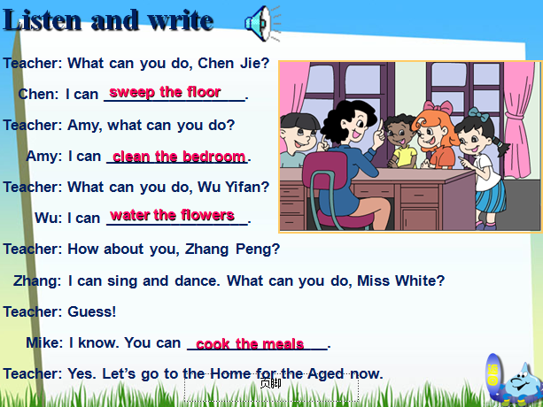 以上就是小编带来的人教版小学五年级英语上册ppt课件,Unit4 what can you do第二课时ppt课件的全部内容,希望大家会喜欢。