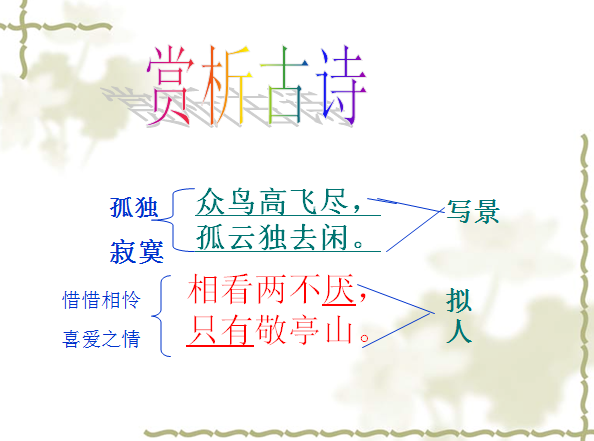 以上就是小编带来的人教版小学四年级语文下册ppt课件,独坐敬亭山ppt课件的全部内容,希望大家会喜欢。