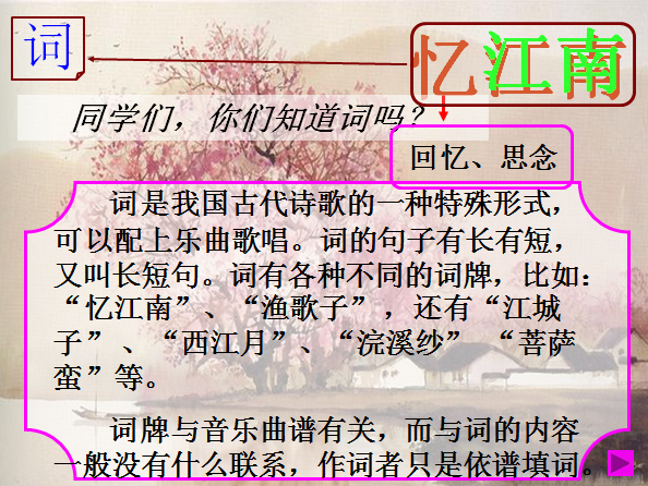 以上就是小编带来的人教版小学四年级语文下册ppt课件,忆江南ppt课件的全部内容,希望大家会喜欢。