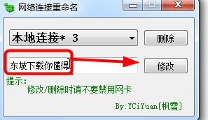 枫雪网络连接重命名软件2015说的简单点就是款相当好用的电脑连接重命名工具,其中他的最大特点就是可帮助有过多连接的系统用户来进行批量重命名操作,从而让自己的连接名称与众不同!