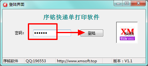1、打开序铭快递单打印软件,输入密码 123456 进行登录(密码可自行修改)
