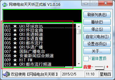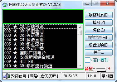 很多时候手机无法收听相关电台的时候,就可以用网络电台天天听软件在电脑上进行使用。不但能自动搜索全国各地经典电台,其中包含环球之声、怀旧金曲等等,而且还能根据自己的喜欢进行自定义搜索,极大的满足了喜欢电台听歌的乐趣!