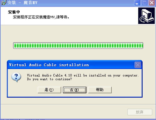 下面安装录制视频组件Virtual Audio Cable,点击“是(Y)”按钮,进行安装。