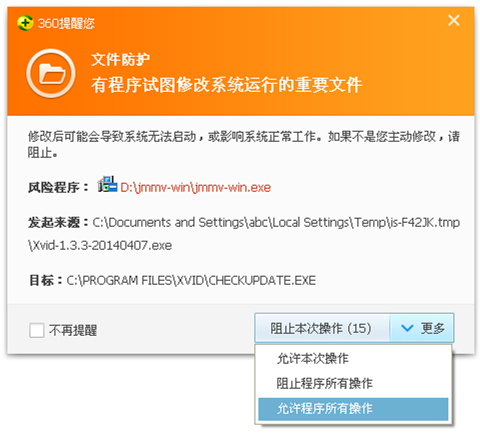 杀毒软件弹出阻止框时,请选择“允许程序所有操作”