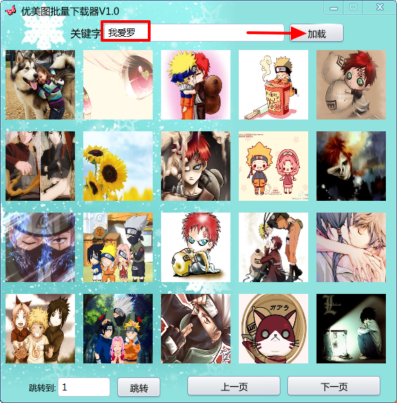 1、打开优美图批量下载器,输入想要的优美图片,点击【加载】