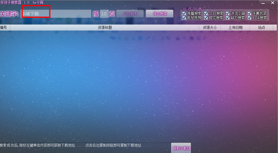 好孩子搜索器其实就是由今宵工作室研发出来的最强悍种子资源搜索软件,不管是你想要搜索什么资源,都能在最快的时间显示出大量相关的信息,而且还能支持免得下载功能,使用这款软件的人都会是好孩子!