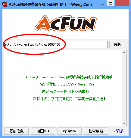1、打开AcFun视频弹幕站在线下载解析助手,复制需要解析的AcFun视频弹幕地址