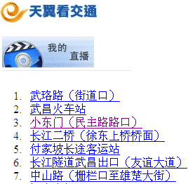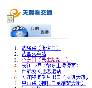 第三步:进入到“天翼看交通”页面,选择所在区域,点击您要观看的路口名称。