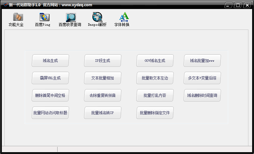 新一代站群助手是一款最新、免费、稳定、好用的站群软件。内置百度收录查询,DNSPOD域名解析,百度ping、域名生成等多功能的站群工具,极大提高工作效率,高效、稳定、获取更多的网站流量。