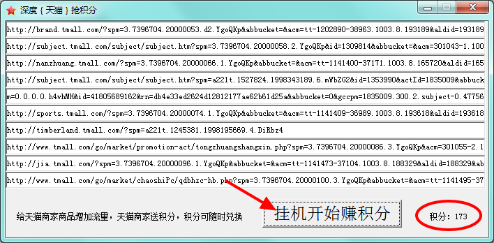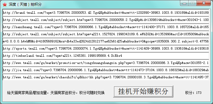 1、打开深度天猫抢积分工具,即可显示出最新天猫抢积分活动链接