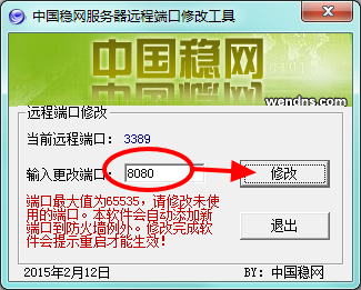 1、打开中国稳网服务器远程端口修改工具,输入需要修改的端口,点击【修改】