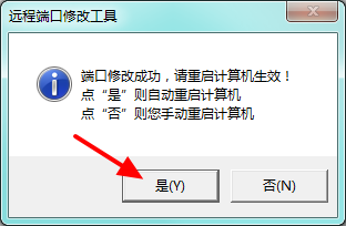 2、点击【是】,重启电脑,端口修改成功
