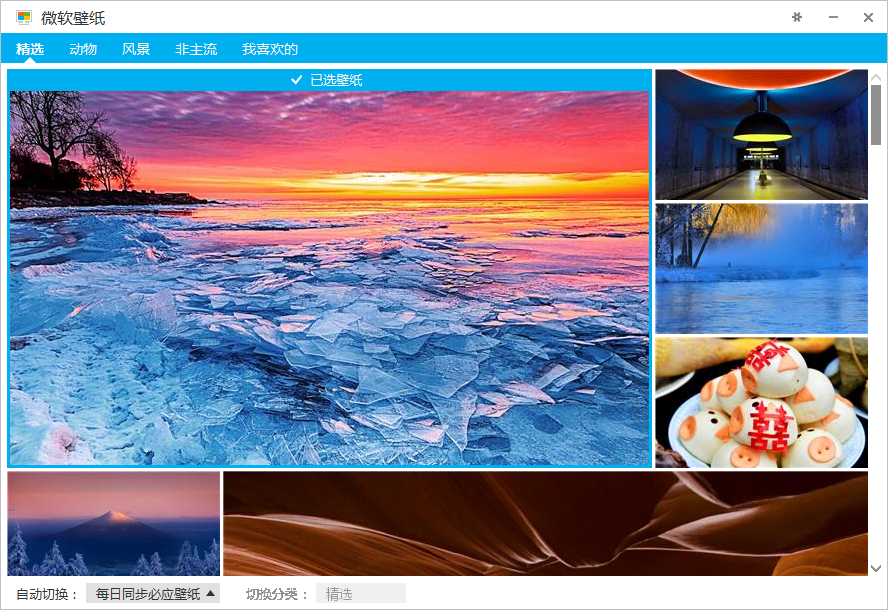 2、安装完成后,打开微软壁纸客户端,选择壁纸,自行选择更换