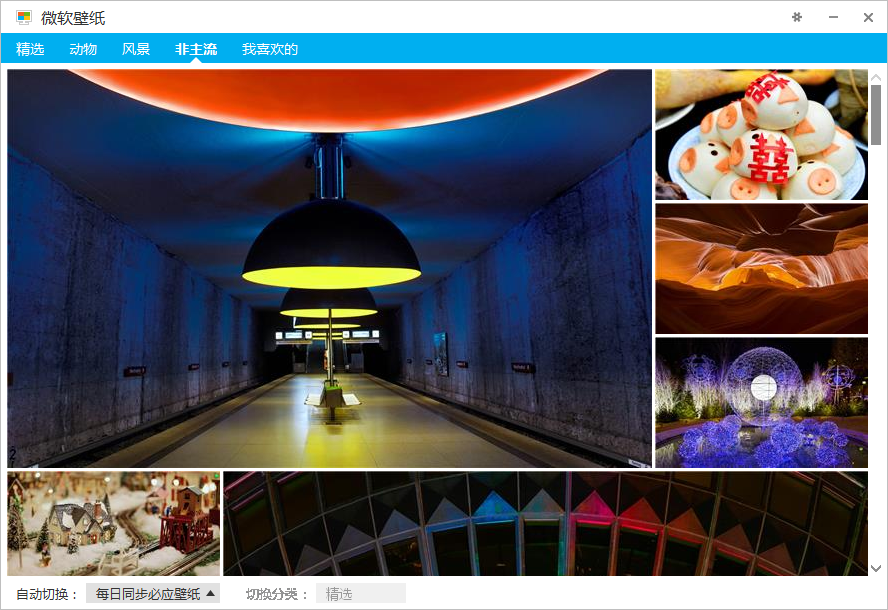 1、精选全球美景壁纸,每日与必应主页(bing.com)同步更新
